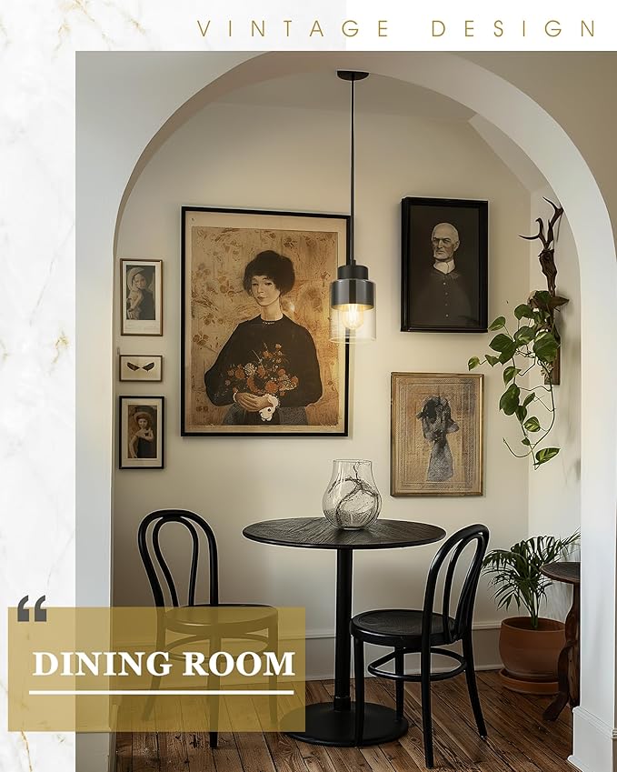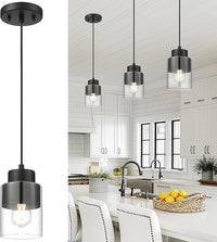 Black Pendant Lights Kitchen Island, Dual Shade Hanging Lights Fixtures with Metal and Clear Glass, Modern Kitchen Pendant Lighting Over Island for Dining Room, AD-24022-1P-BK