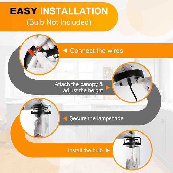 Industrial Pendant Lighting for Kithen Island, Black Pendant Light Fixture with Clear Glass Shade, Modern Mini Ceiling 3 Light Fixture Adjustable Kitchen Island Lighting(E26 Base)