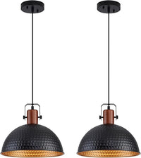 12 Inch Black Pendant Lights Hammered Matte Pendant Lights for Kitchen Island Industrial Farmhouse Adjustable Height Dome Hanging Light Fixtures for Barn, Dining Room 2 Packs