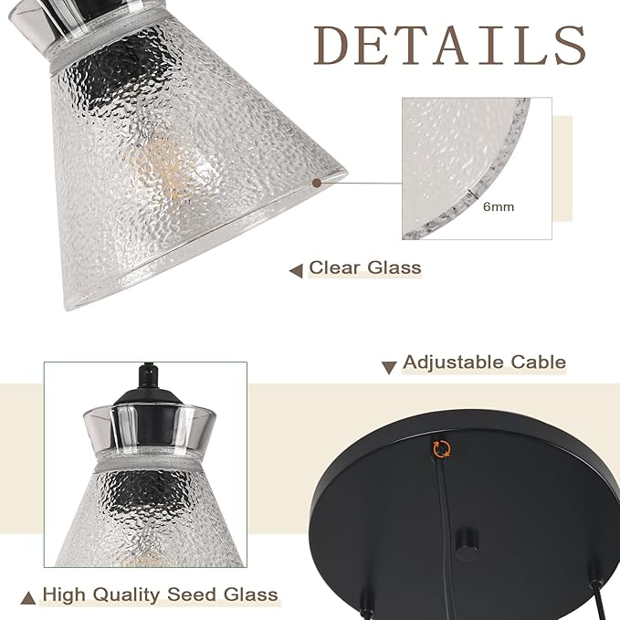 Industrial Farmhouse Hanging Pendant Lighting for Kitchen Island Black Brushed Glass Pendant Light Linear Chandelier Farmhouse Hanging Light Fixtures