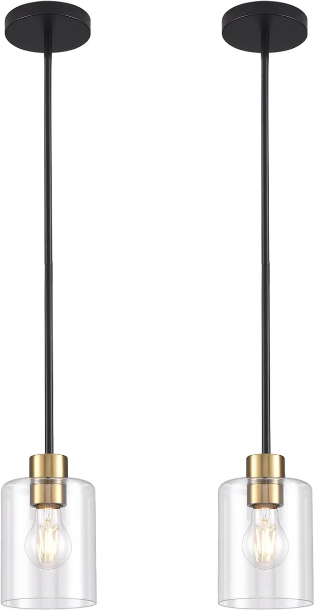 Black Brass Pendant Lights Kitchen Island - Clear Glass Pendant Light Fixture Multiple Stems Rods 3 Units 12 Inch 3 Units 4 Inch (2 Pack Black Brass Downrod)