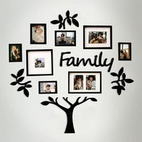 J.M.Deco 13 Pack Family Tree Photo Frame Collection with Lvory Mat Set- Photo Size One 4''x4'' Five 4''x6'' Three 5''x7''- PVC-Wall Mounting Picture Frame for Home Living Room Bedroom 3D Design-Black