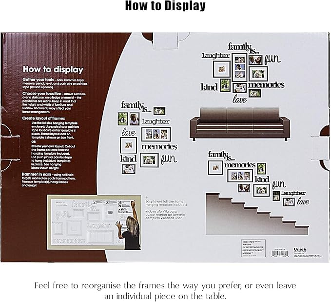 J.M.Deco 13 Pack Photo Frame, 9 Slots Reunion Family Memory Picture Frame Selfie 3D Design Gallery Collage Wall Hanging for 6x4 Photo, 5x7 Photo, 4x4 Photo, Black