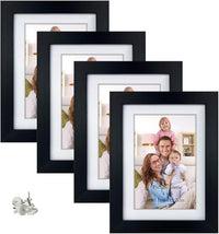 Giftgarden 4x6 Picture Frame Set of 4, 5x7 Frames Matted to 4 by 6 Pictures with Mat or 5 by 7 Photos without Mat, Wall Hanging or Tabletop Display, Black