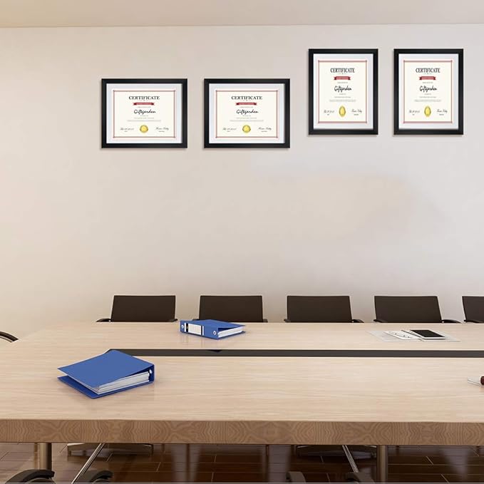Giftgarden Black 8.5 x 11 Picture Frame with Mat, 10x12 Frame Matted to 8.5x11 Award Certificate Document Photo, Wall or Tabletop Display, Set of 4