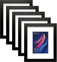 VCK Picture Frame 8×10 Set of 5 Display Pictures 5x7 with Mat or 8x10 Without Mat, High Definition Glass Multi Black Photo Frames for Baby Pictures, Weddings, Portraits Display