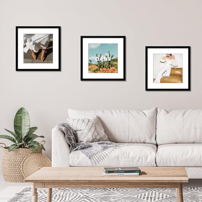 THREELOVE 16x16 Frame Black, Display Picture 12x12 with mat or 16x16 Without mat, Photo Poster Picture Frame Wall Mounting Home Decor, 3 PCS