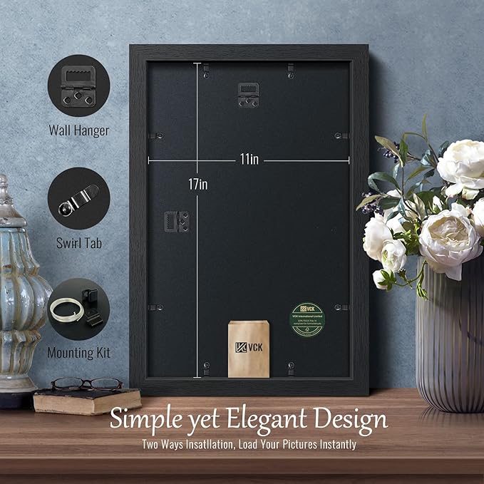 VCK 11x17 Poster Frame Set of 4, Black Solid Wood Picture Frames with Exclusive Woodgrain, Wall Gallery Frame