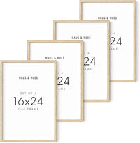 HAUS AND HUES Picture Frames 16x24 - Set of 4 Standalone Beige Oak Frame 16x24 Picture Frames for Wall, Poster Frames 16x24, 16 x 24 Gallery Wall Frame Set, 16 by 24 Picture Frame (Beige Frame)