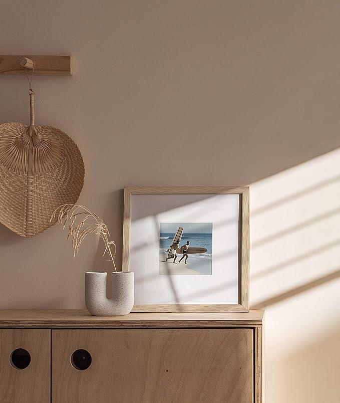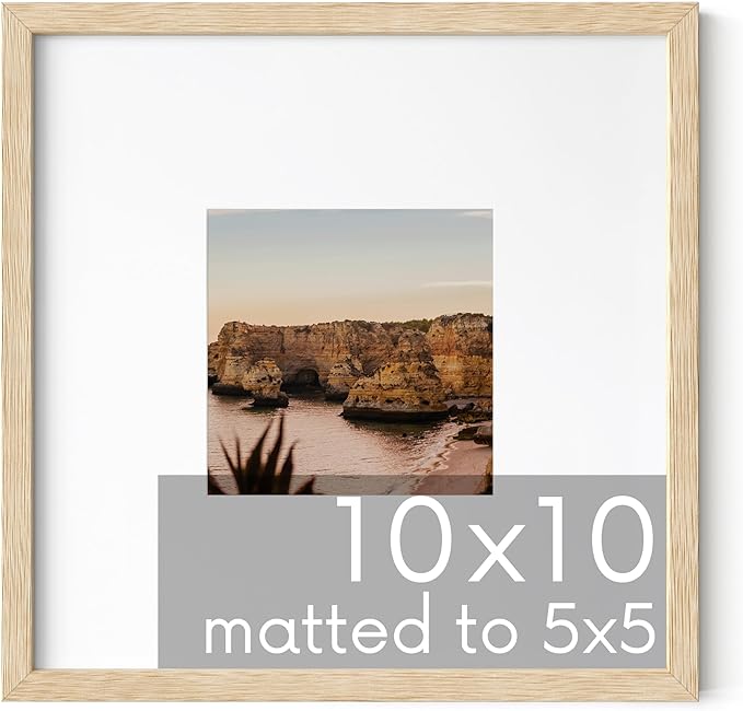 HAUS AND HUES Solid Oak 10”x10” Picture Frame Matted to 5”x5” - 10x10 Wood Frame for Wall, Square Frame with Mat, 10x10 Art Frame, 10x10 Square Photo Frame, Natural Wood Frames (Beige Oak Frame)