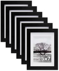 Egofine 5x7 Picture Frames 6 PCS - Made of Solid Wood Covered by Plexiglass Matted for 4x6 and 3.5x5 for Table Top Display and Wall Mounting photo frame Black