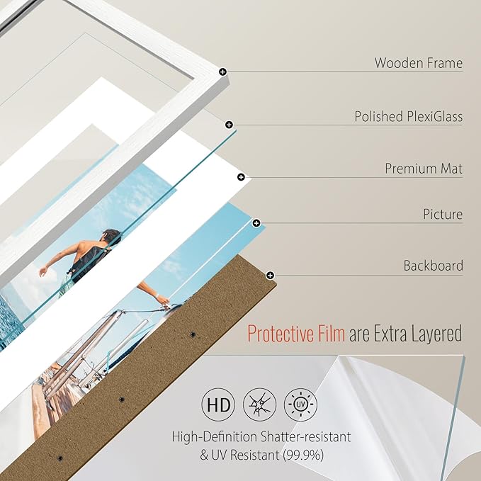 VCK 24x36 Poster Frame White - with Mat 20x30, Textured Exclusive Solid Wood Picture Frame, Horizontal and Vertical Formats with Included Hanging Hardware - 2 Pack