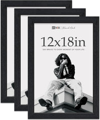 VCK 12x18 Black Oak Poster Frame 3-Pack, Natural Grain Solid Wood Picture Frame, Wall Gallery Frame