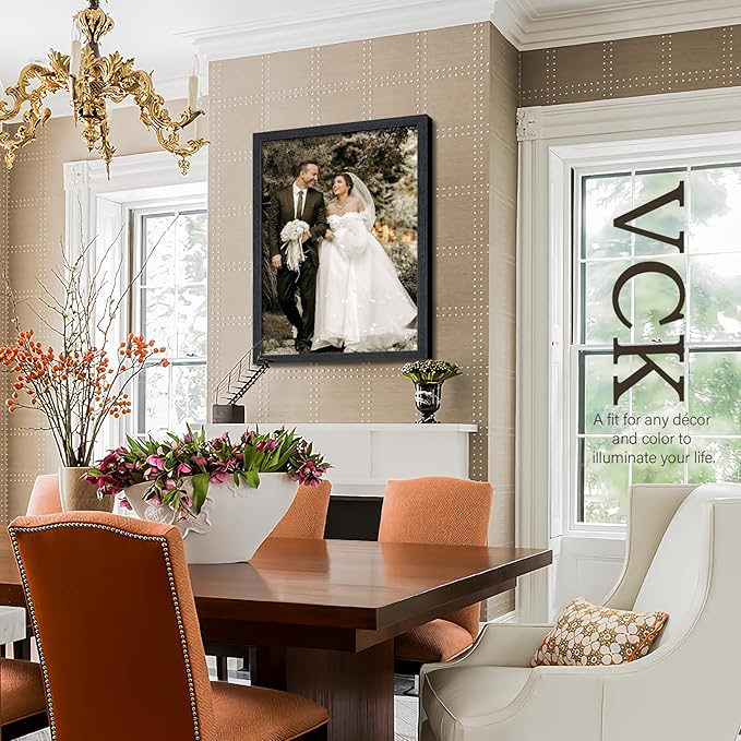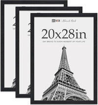 VCK 20x28 Poster Frame 3 Pack - Black Oak, Natural Textured Solid Wood Picture Frames, Wall Hanging