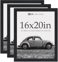 VCK 16x20 Picture Frames for Wall - Black Oak 3 Pack, Natural Wood Grain Solid Wood Poster Frame
