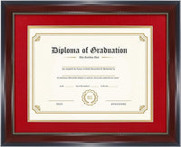 GraduatePro 8.5x11 Diploma Frame with Red Over Gold Mat or Display 11x14 Document Without Mat, CPA License Frame, UV Protection Acrylic, Mahogany with Gold Beads