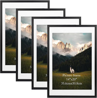 Giftgarden 16x24 Picture Frame Set of 4, Matted to 14x20 Poster with Mat for Wall Hanging, Black