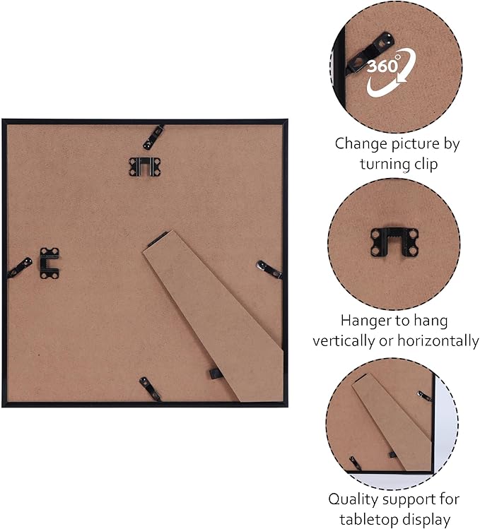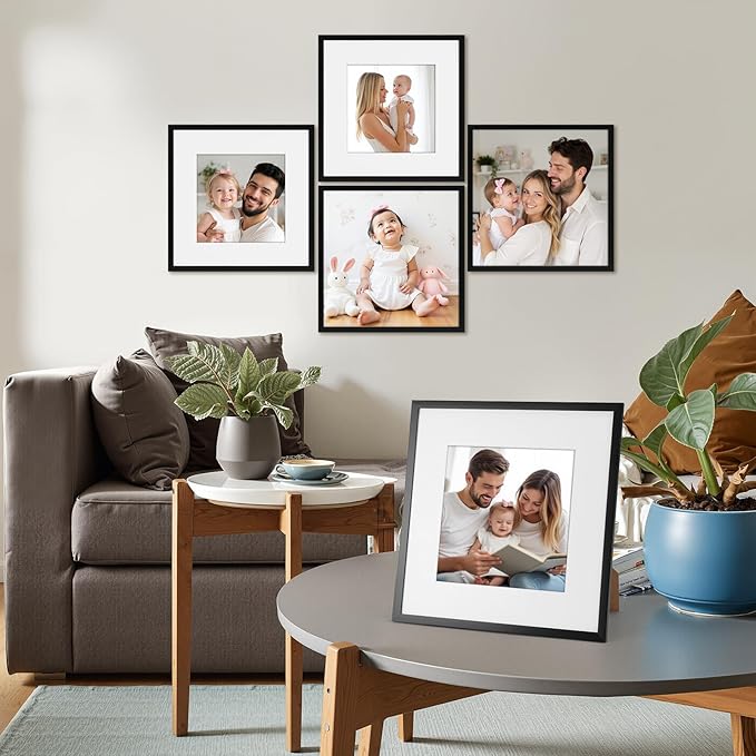 Giftgarden Black 12x12 Picture Frame Set of 4, Matted to 8x8 Picture with Mat, Matted Square Frames for Wall or Tabletop Display