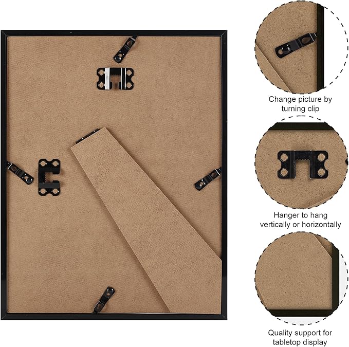 Giftgarden Black 8.5x11 Picture Frame Set of 4, Matted to 6x8 Picture or 8.5 x 11 Inch Certificate Award Document Without Mat, Wall and Tabletop Display