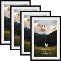 Giftgarden 13x19 Picture Frames Set of 4, Matted to 11x17 Picture with Mat or 19x13 Artwork Without Mat, Black