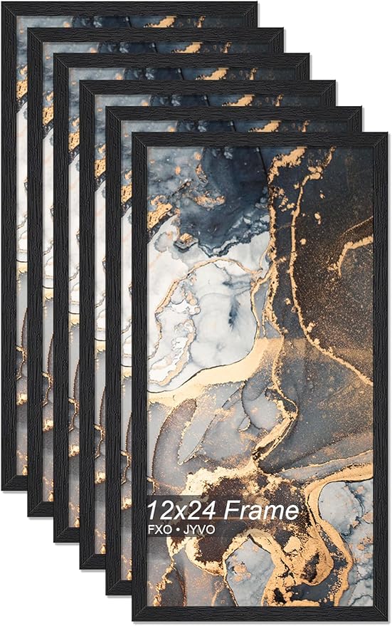 Engineered Wood 12x24 Picture Frame Set of 6, Black Frame for 12 x 24 Inch Picture Poster Photo, Light Weight 12 by 24 Frame with Wood-grain for Wall - 6 Pack/Black/12 x24
