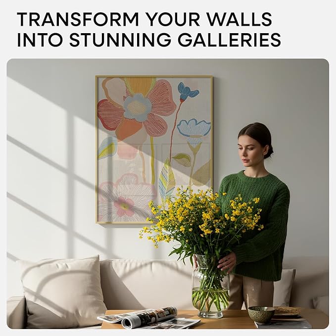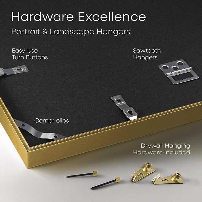 Homeforia 22x28 Picture Frame Gold, High End Metal 22 x 28 Large Poster Frames with Mat 18 by 24 for Photo, 22x28 Gold Frame Matted to 18x24 inch Print, 28x22 Frame, Tempered Glass, Wall Kit, Set of 1