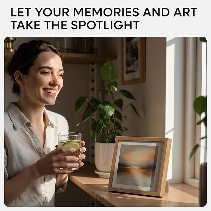 Homeforia 8x8 Picture Frames Wood, High-End Natural Oak 8 x 8 Square Frames with Mat 6 by 6 inch Photo, 8by8 Light Wooden Frames Matted to 6x6 Print, Tabletop Frame, Tempered Glass, Wall Kit, Set of 1