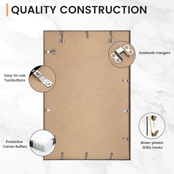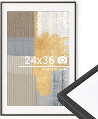 24x36 inch Metal Poster Frame - 24 x 36 Thin Aluminum Picture Frames Matted for 20x30 Photos, Artworks, Prints, Puzzle - High Definition Plexiglass - Vertical and Horizontal Display - Wall Hook Hanging Hardware Included - Black, Set of 1