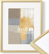8x10 inch Metal Picture Frame - 8 x 10 Thin Aluminum Photo Frames with 5x7 Removable Mat - High Definition Plexiglass - Ideal for Wall or Tabletop Display - Wall Hook Hanging Hardware Included - Gold, Set of 1