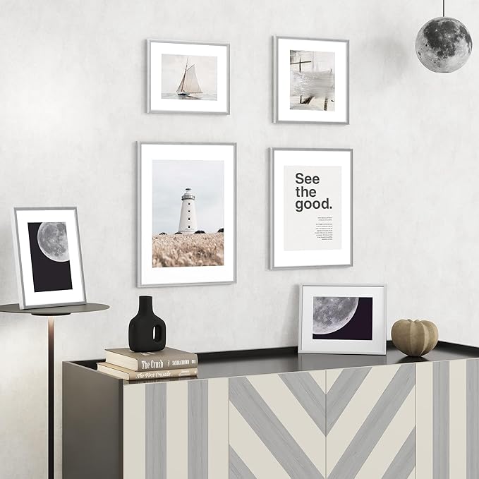 16x24 inch Metal Poster Frame - 16 x 24 Thin Aluminum Picture Frames Matted for 12x18 Photos, Artworks, Prints, Puzzle - High Definition Plexiglass - Vertical and Horizontal Display - Wall Hook Hanging Hardware Included - Silver, Set of 1