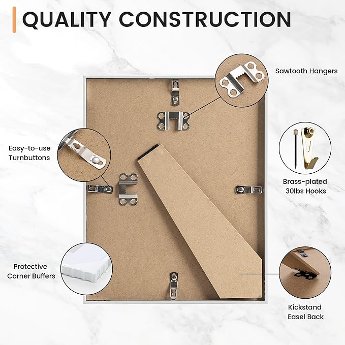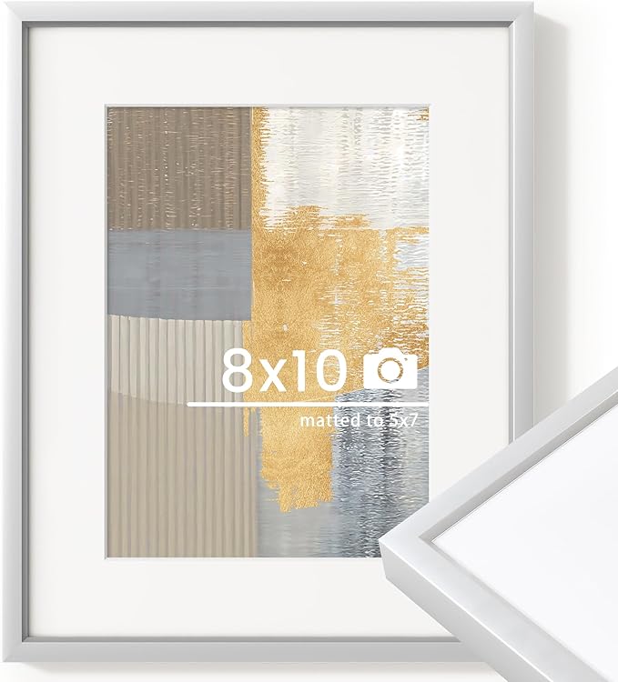 8x10 inch Metal Picture Frame - 8 x 10 Thin Aluminum Photo Frames with 5x7 Removable Mat - High Definition Plexiglass - Ideal for Wall or Tabletop Display - Wall Hook Hanging Hardware Included - Silver, Set of 1