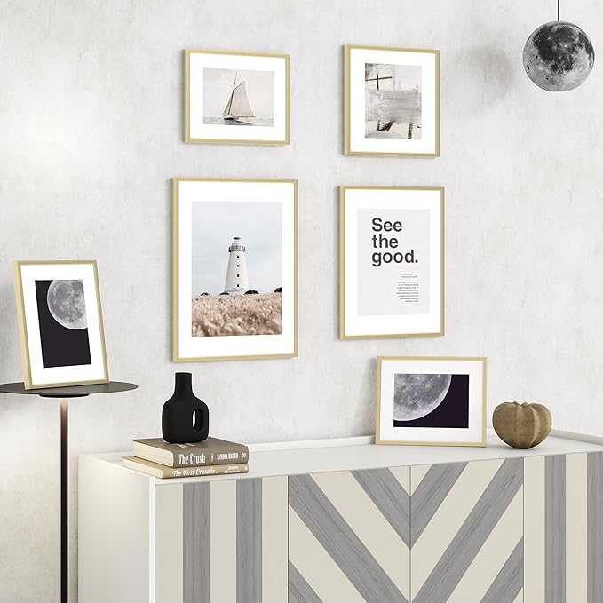 12x16 inch Metal Picture Frame - 12 x 16 Thin Aluminum Photo Frames with 9x12 Removable Mat - High Definition Plexiglass - Vertical and Horizontal Display - Wall Hook Hanging Hardware Included - Gold, Set of 1