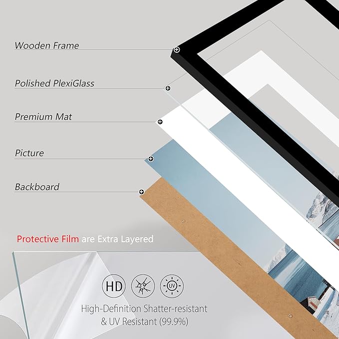 12x16 Picture Frame 5 Pack, Black Poster Frame, Display Pictures 11 x 14 with Mat or 12 x 16 Without Mat for Horizontal or Vertical Wall Mounting, Wall Gallery Frame for Artwork Certificate