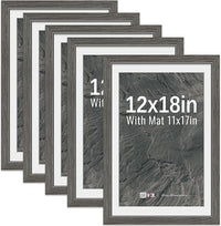 VCK 12x18 Picture Frame 5 Pack - Grey, High-End Wood Poster Frames with Tempered Glass, Display 11x17 Photo with Mat or 12x18 without Mat, Art Gallery-Quality, Wall Hanging, Grey