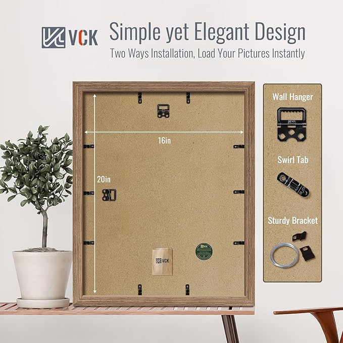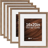 VCK 16x20 Picture Frame 5 Pack - Walnut, High-End Wood Poster Frames with Tempered Glass, Display 11x14 Photo with Mat or 16x20 without Mat, Art Gallery-Quality, Wall Hanging, Walnut
