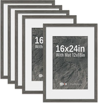 VCK 16x24 Poster Frame 5 Pack - Grey, High-End Wood Picture Frames with Polished Plexiglass, Display 12x18 Photo with Mat or 16x24 without Mat, Art Gallery-Quality, Wall Hanging, Grey