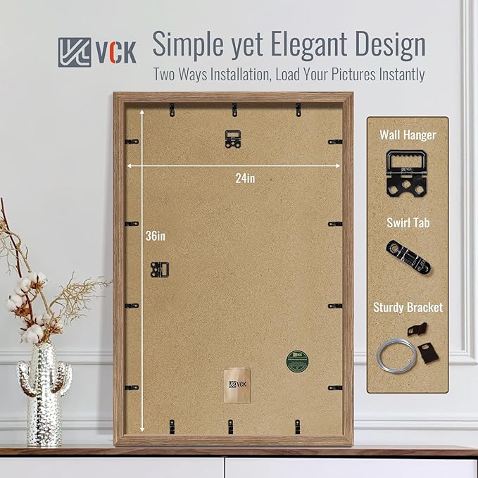 VCK 24x36 Poster Frame 5 Pack - Walnut, High-End Wood Picture Frames with Polished Plexiglass, Display 20x30 Photo with Mat or 24x36 without Mat, Art Gallery-Quality, Wall Hanging, Walnut