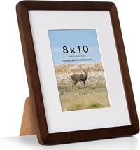 8x10 Picture Frame - Solid Walnut Wood 8 x 10 Photo Frame, 8''x10'' Frame With Mat For 5x7, Tabletop and Wall Display, Hanging Hardware Included, 8 By 10 Picture Frame Wood, Natural Walnut