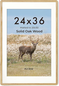 24x36 Poster Frame - Solid Oak Wood 24 x 36 Picture Frame, 24''x36'' Frame With Mat For 20x30, Tempered Glass and Hanging Hardware Included, Minimalist 36 By 24 Photo Frame Wood, Natural Oak