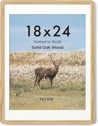 18 x 24 Poster Frame - Solid Oak Wood 24x18 Frame, 18 x 24 Picture Frame With Mat For 16x20, Tempered Glass and Hanging Hardware Included, Puzzle Frame 18''x24'' Wood, Natural Oak