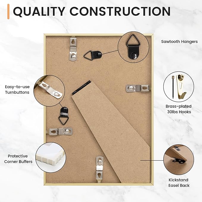 5x7 inch Metal Picture Frame - 5 x 7 Thin Aluminum Photo Frames with 4x6 Removable Mat - High Definition Plexiglass - Ideal for Wall or Tabletop Display - Gold, Set of 4