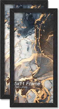 Engineered Wood 5x11 Picture Frame Set of 2, Black Frame for 5 x 11 Inch Picture Poster Photo, Light Weight 5 by 11 Frame with Wood-grain for Wall - 2 Pack/Black/5"x11"
