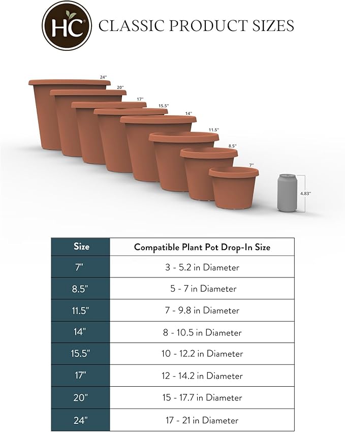 8.5 inch Round Classic Planter - Plastic Plant Pot for Indoor Outdoor Plants Flowers Herbs, Chocolate