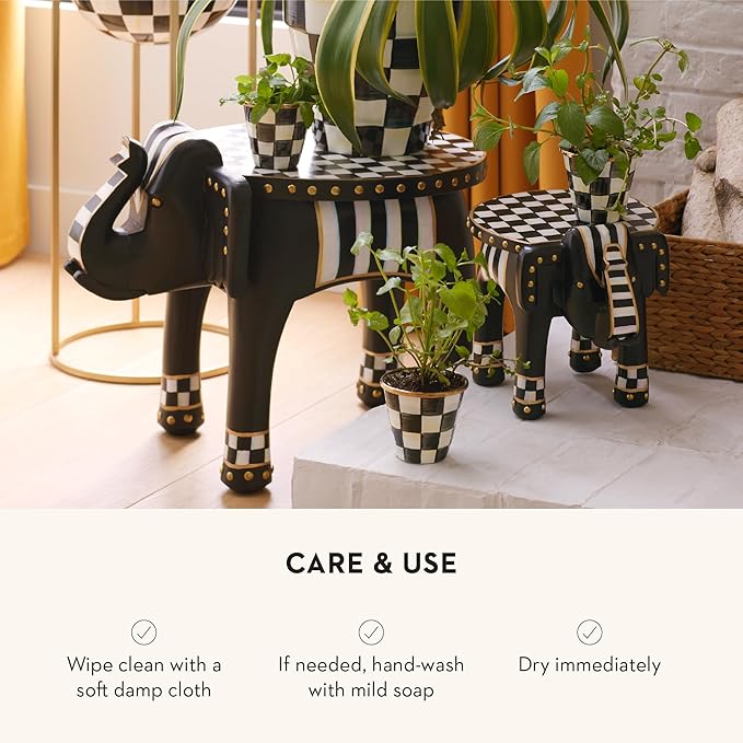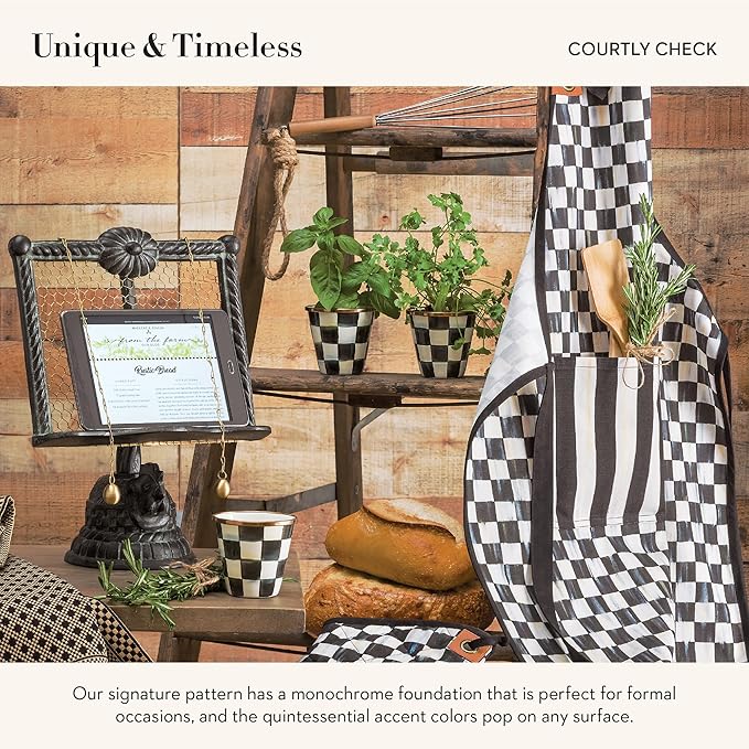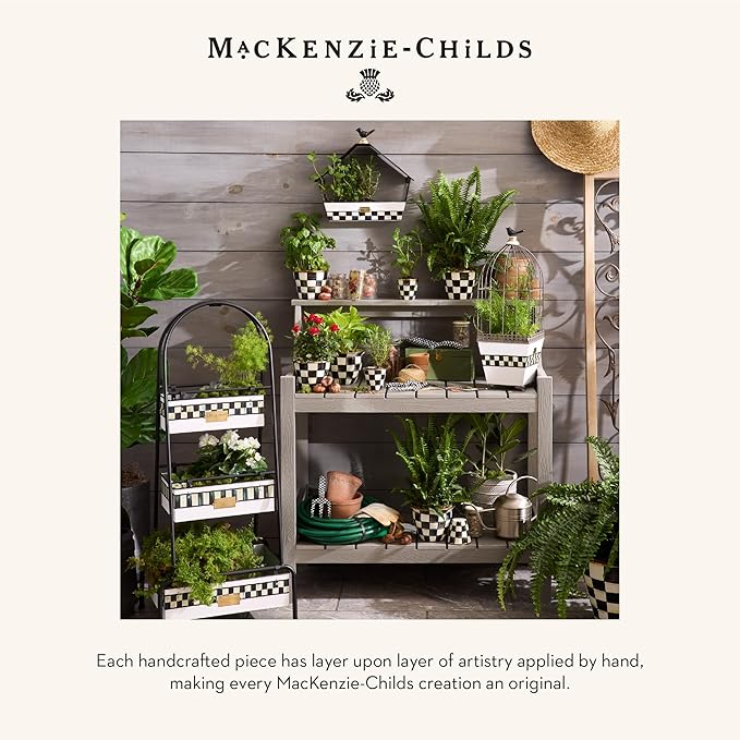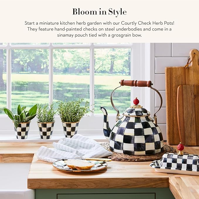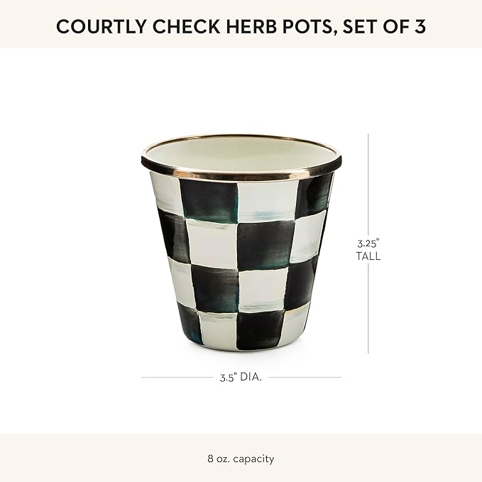 MACKENZIE-CHILDS Enamel Herb Pots, Small Plant Pots for Herbs or Flowers, Set of 3, Black-and-White Courtly Check