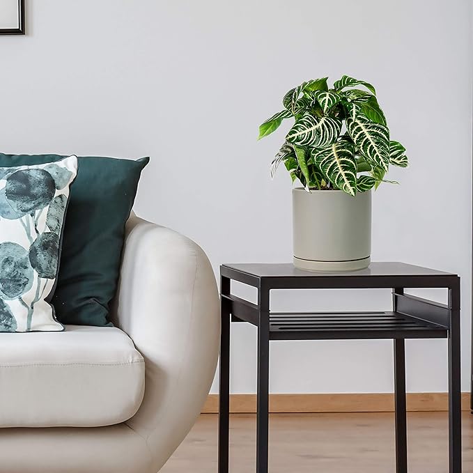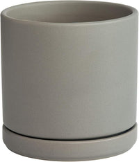 D'vine Dev 6 Inch Ceramic Planter Pot with Drainage Hole and Saucer, Indoor Cylinder Round Flower Pot, Grey, 94-O-C-3