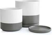 D'vine Dev 8 Inch & 10 Inch Ceramic Planter Pot for Plants with Drainage Hole and Saucer, Large Plant Pots Set, White/Speckled Grey, 94-G-L-6