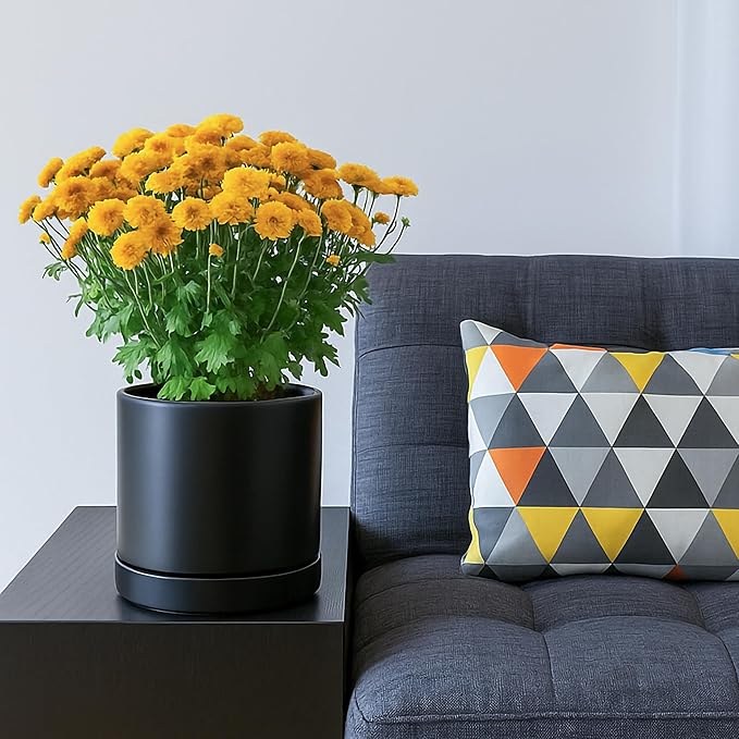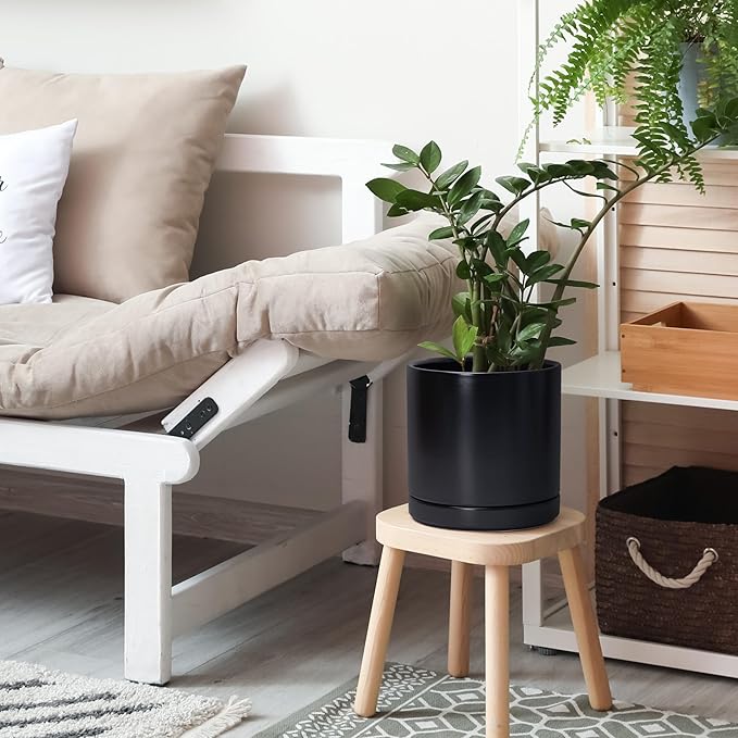 D'vine Dev 6 Inch & 8 Inch Ceramic Planter Pots for Plants with Drainage Hole and Saucer, Medium Plant Pots Set, Black, 94-G-M-2