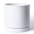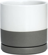 D'vine Dev 6 Inch Ceramic Planter Pot with Drainage Hole and Saucer, Indoor Cylinder Round Flower Pot, White/Speckled Grey, 94-O-C-6