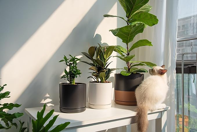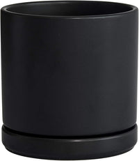 D'vine Dev 6 Inch Ceramic Planter Pot with Drainage Hole and Saucer, Indoor Cylinder Round Flower Pot, Black, 94-O-C-2