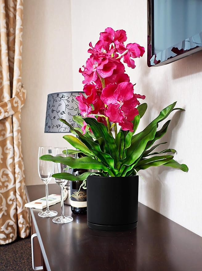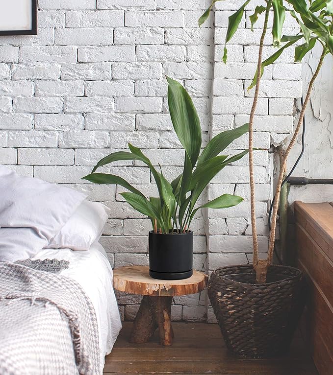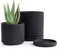 D'vine Dev 4.6 Inch & 6 Inch Ceramic Planter Pots for Plants with Drainage Hole and Saucer, Small Plant Pots Set, Black, 94-G-S-2
